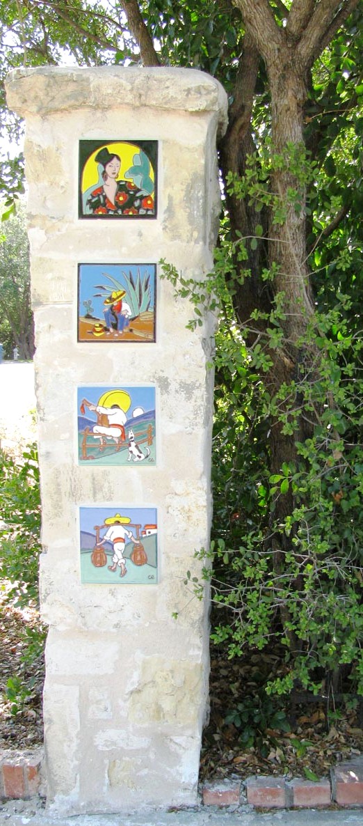 Four tiles were set into an entry post of a home in San Jose, CA. The owner sent the photos, with a thank you note stating that her tiled entryway has drawn many compliments and appreciation of the creativity.
