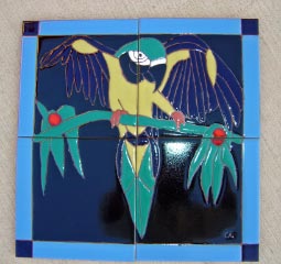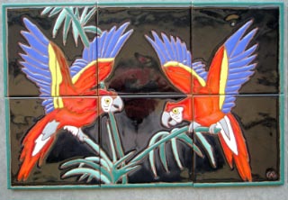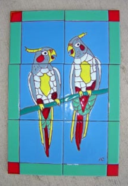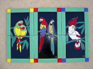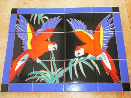 2 tile set "Lovebirds" "The Macaws" "Scarlet Crested Cockatoo"