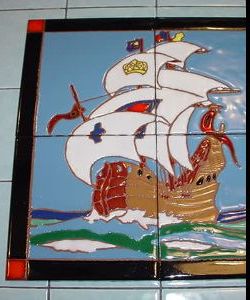 This custom design is set into a fireplace in Oceanside, CA, and a wall inside a Catalina home. Because of the intricate work involved, it is priced at $319.00 for the set.